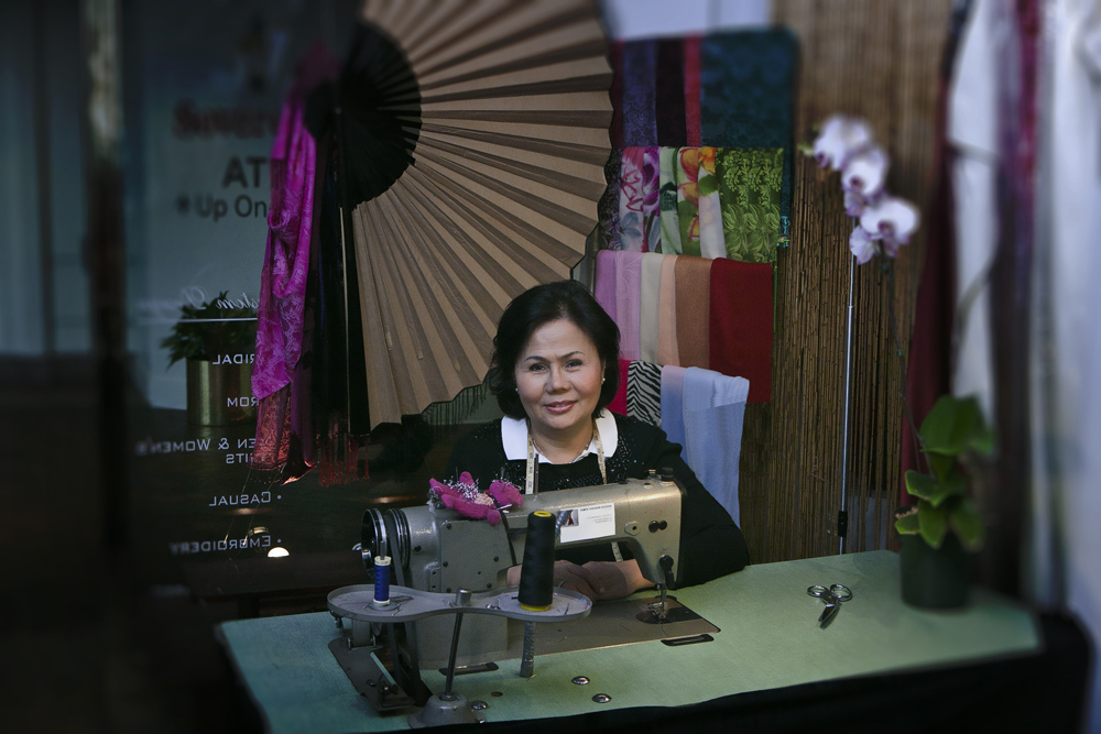 Kim’s Fashion Design was established in 1990 in Chinatown. On two separate instances, a fire and a burst water pipe destroyed her business. Kim persevered and her bespoke tailoring skills were recognized by many clients. She set up a small boutique at Copley Place in 2004. She collaborated with brands like Gucci and Prada to provide alteration services.
